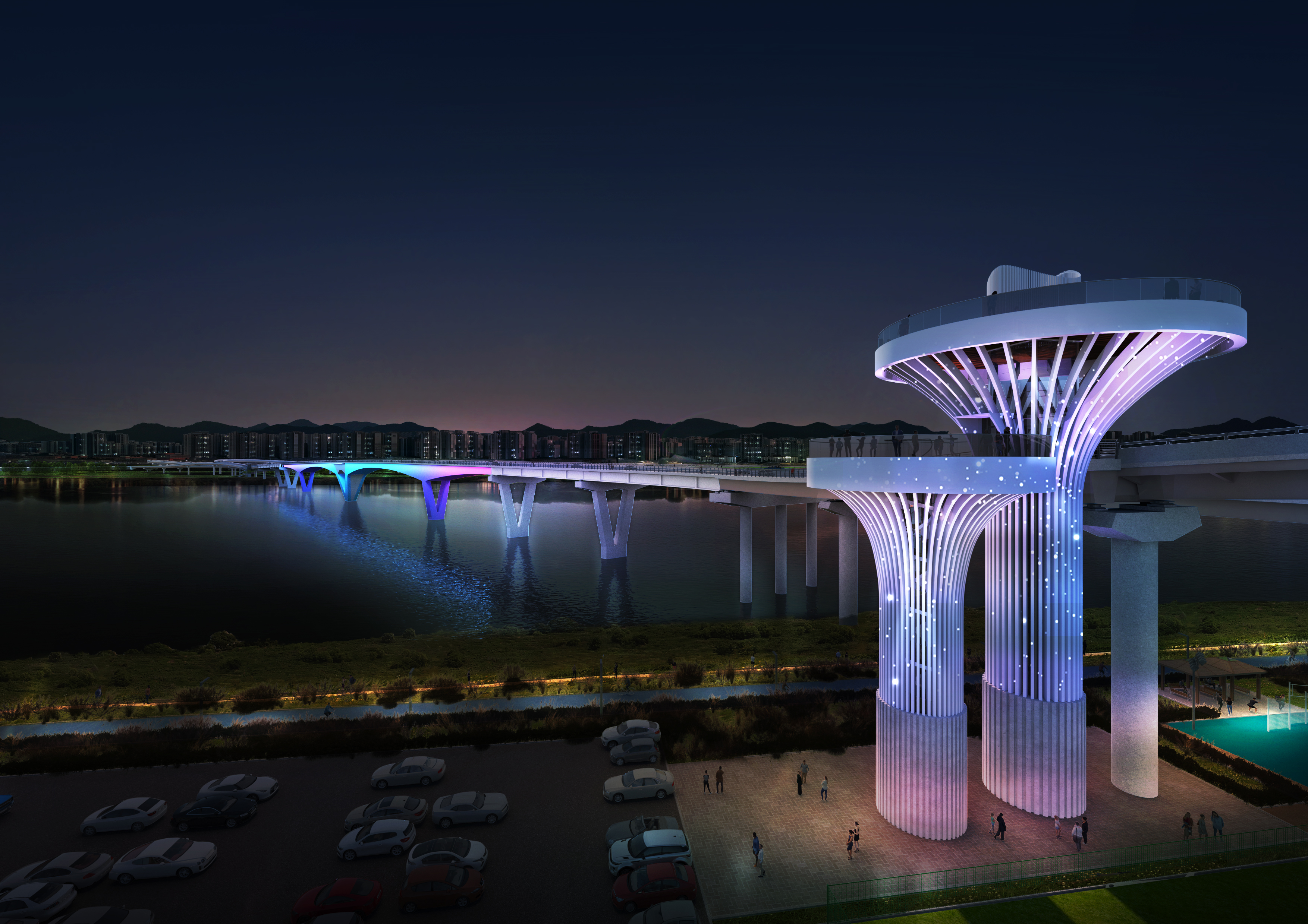 This projectc involves the construction of a new Han River bridge and Olympic-daero expansion to improve metropolitan transportation connectivity in response to the development of the Namyangju Wangsuk District and Yangjeong Station Area, which are part of the 3rd Generation New Town initiative. The project will serve as a key access route from the southern part of the Han River while alleviating traffic congestion on Ganbyeonbuk-ro and Olympic-daero. Considering a bridge crossing the Han River, the project was commissioned as a Design-Build(Turnkey) contract. The new Han River bridge comprises of the main bridge and two approach bridges, and ramp bridges connecting to Gangbyeonbuk-ro and Olympic-daero. The New Han River Bridge is 794m long in total and the main bridge is a PSC box girder bridge with the center span of 180m long. Two approach bridges with the span of 63.5m consist of I-PSC beam bridges. BANDI is in charge of the design of the main bridge in this project.