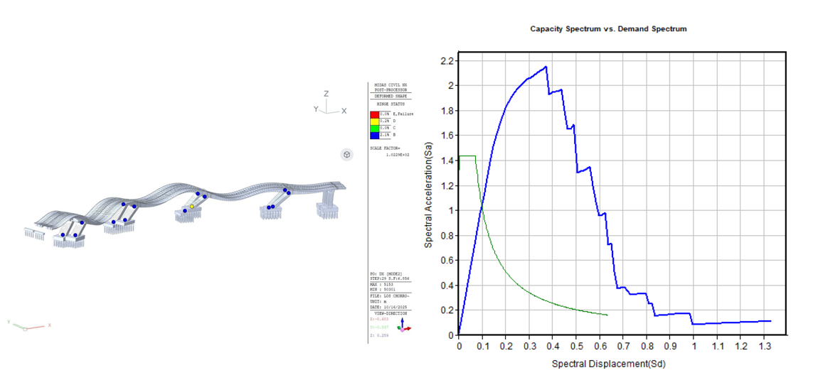 Construction of the Los Chorros Viaduct commenced in 2022 following detailed design. However, some design issues such as seismic design were raised during construction, and construction of bridge was halted in July 2025. BANDI conducted an independent detailed peer review of the original design. A comprehensive review of the original design's structural safety was conducted through various highly sophisticated precision analyses, including the application of nonlinear p-y curves between piles and soil, moment-curvature analysis, push-over analysis, and time-history analysis considering material nonlinearity.