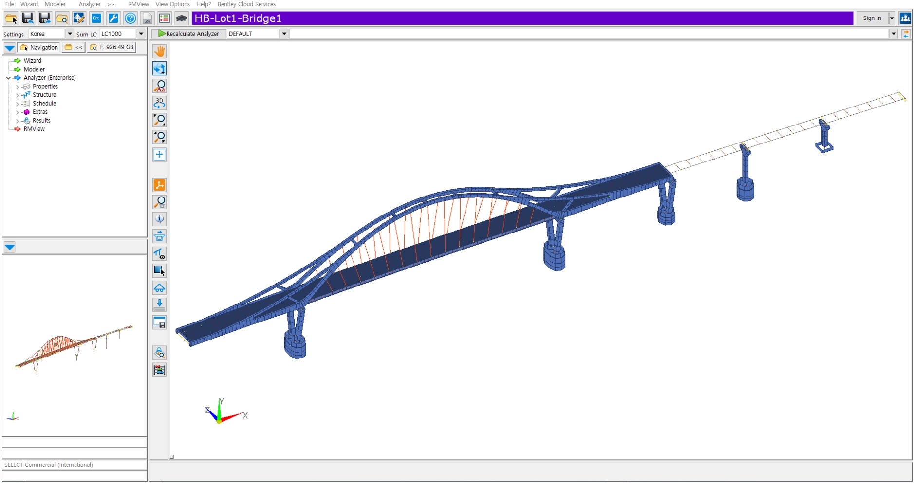- 행어시스템총 30개의 PWS 행어케이블은 보강거더 정착구를 기준으로, 교축방향으로 12m 간격으로 설치되며, 경간 중앙부에서 양측 교각부로 3도씩 경사지게 배치하여 보다 다이나믹한 경관을 연출할 수 있도록 계획하였다.